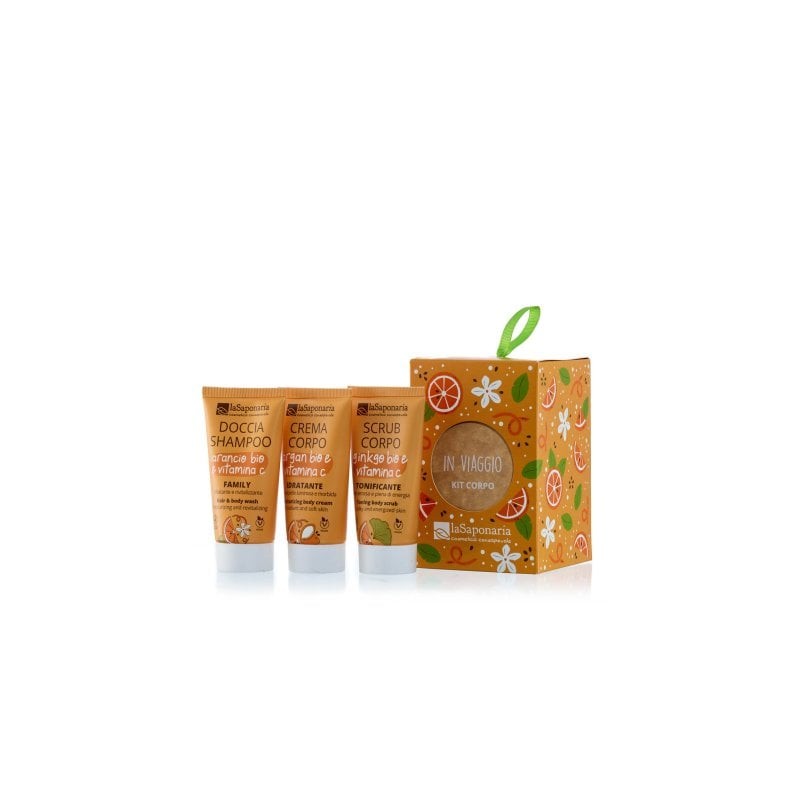 La lanterna contiene le travel-size di crema corpo, scrub corpo e doccia shampoo