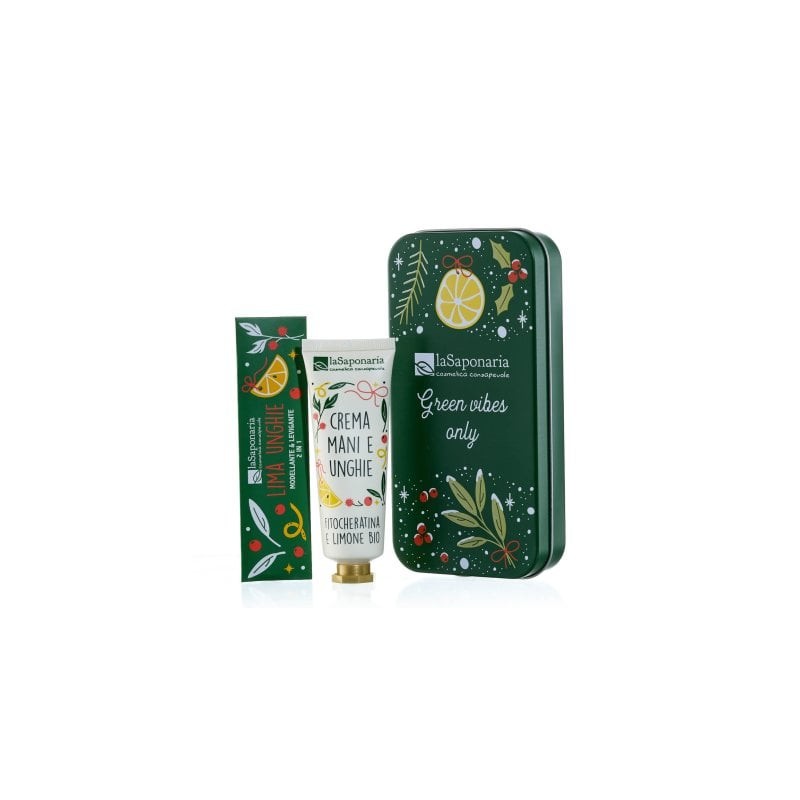 Scrigno in latta riutilizzabile con crema mani e lima unghie